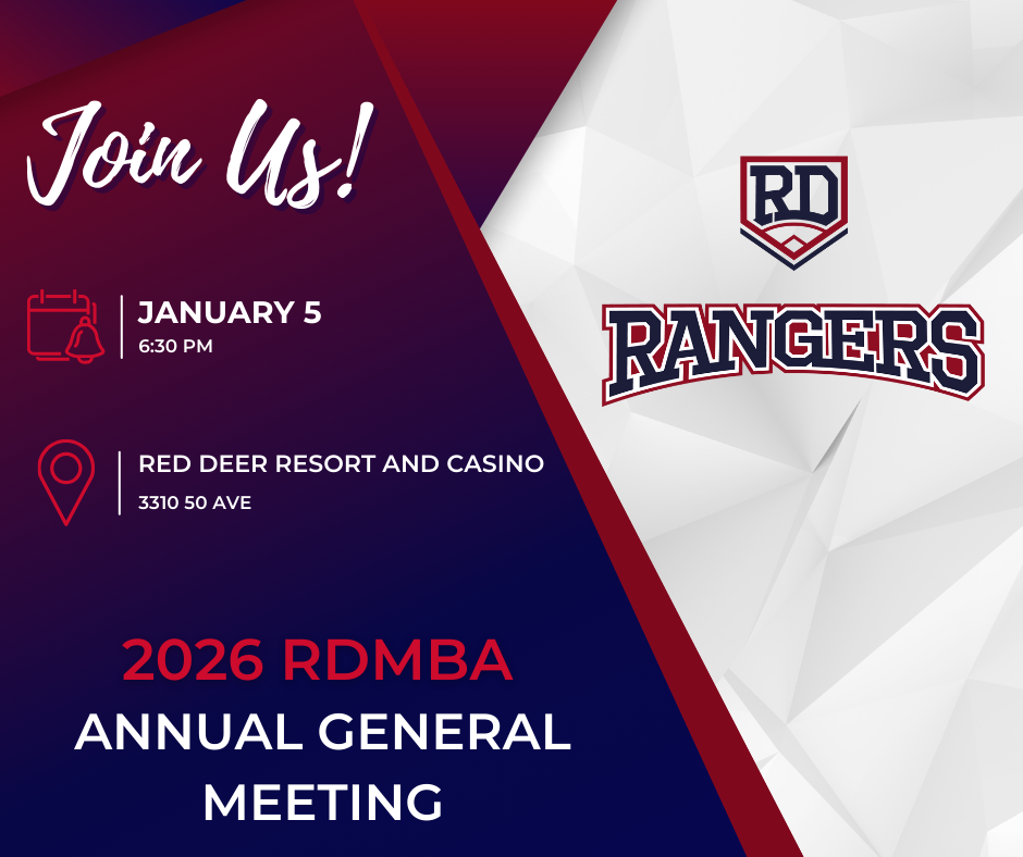 Registration is now open for the Red Deer Minor Baseball Association (RDMBA) Annual General Meeting, taking place on January 5, 2026. The AGM provides an opportunity to review association objectives, present the proposed 2026 budget, and conduct elections for the Board of Directors.